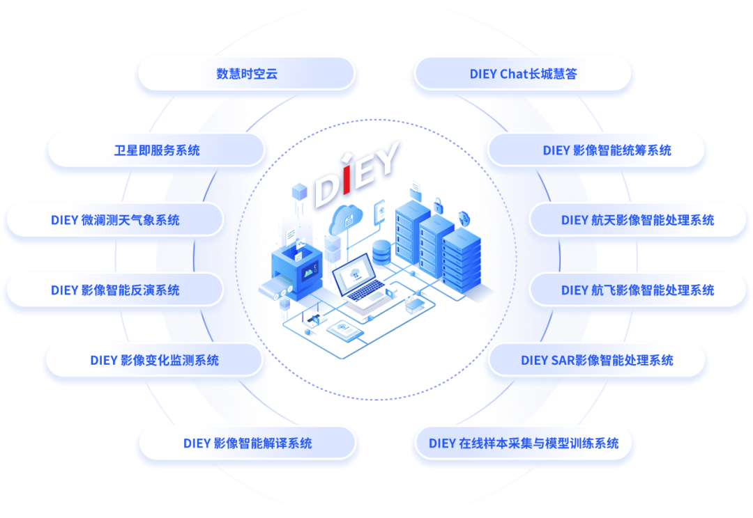 DIEY遥感云脑是基于千亿级参数形成的空天地一体化监测监管平台,可统筹处理海洋、气象、资源、高分、SAR等卫星影像以及无人机、视频、物联网等各种监测设备的数据,通过样本采集、模型训练、监测分析形成多源数据。基于DIEY,数慧时空提供基础遥感数据产品、地表监测数据产品、场景应用数据产品等,支撑各类政府治理、企业监管的数据要素需求,促进数据要素化、数据业务化不断落地。